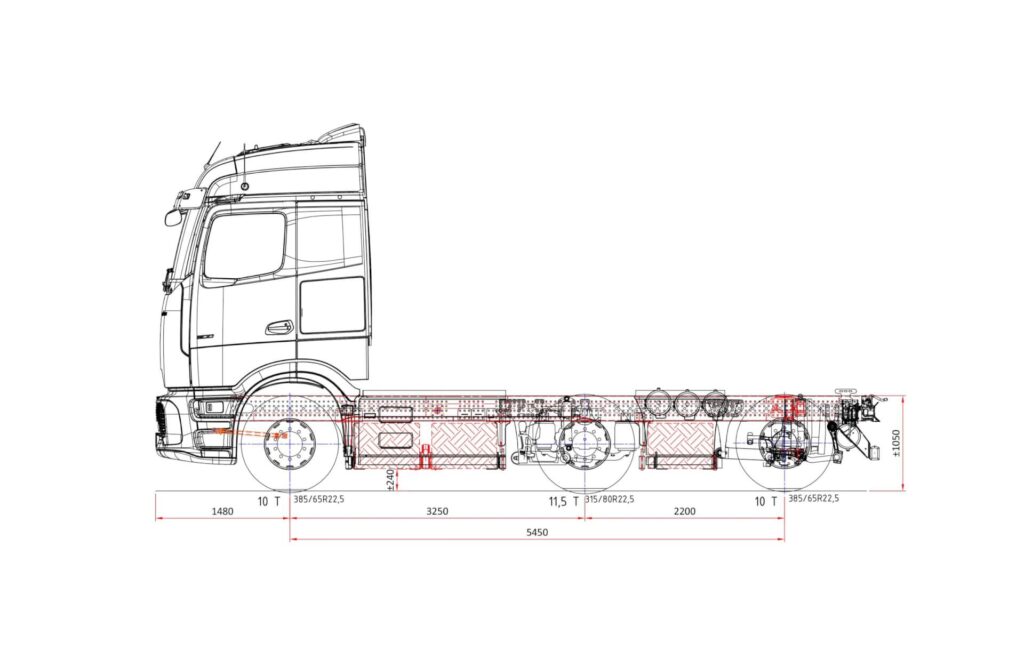 Ombouw Mercedes e-Actros New-Generation 400+600 L6x2 naar e-Actros L6x2 met Wide Spread Gestuurde achteras (31,5T). Opties: – F3P ProCabine of ClassicSpace 2,30m tunnel 170mm – — wielbasis 4.000 4.300 4.600 5.200 mm – A1E vooras 9,0T – C6G Servotwin – A4Y naloopas gestuurd en hefbaar 7,5 Ton – XOF 50 Ton treingewicht – C0Z […]