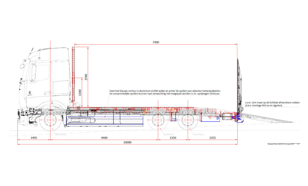 Monteren van opbouw op een Mercedes Actros 25.. LL t.b.v. hoogwerker transport. Voertuig bestellen met wielbasis 5,80 mtr. inclusief onderstaande opties: – F1Q middellange cabine – V1X volume chassis – F41 ruiten in achterwand – LOY verlengde bekabeling achterlichten – E5A schakelaar t.b.v. opbouw – L2Y gele zwaailampen L+R – M8A luchtaanzuiging voorzijde […]