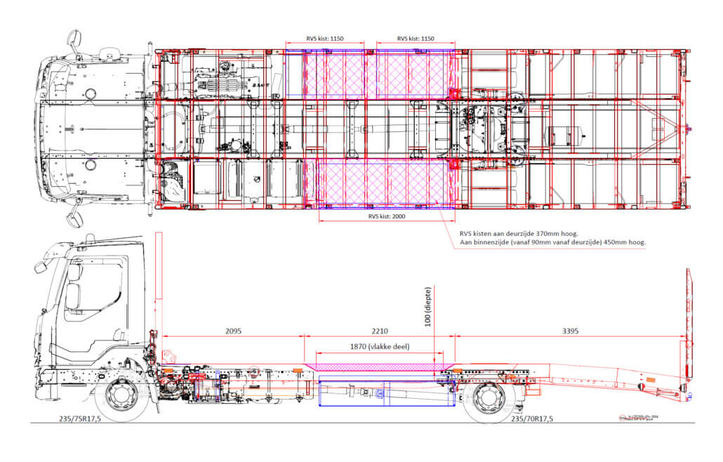 7,70 x 2,35 mtr. (wielbasis 5,40 mtr.) (opbouw gewicht ± 1.600 kg) € 33.560,=