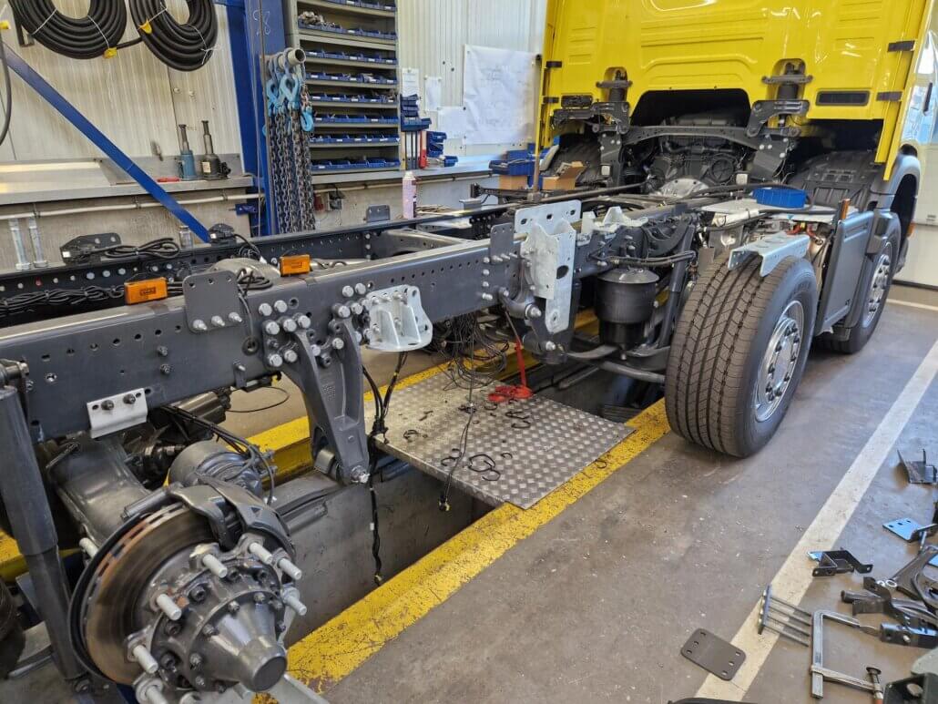 – voorbanden wisselen van 385/55R22,5” naar 385/65R22,5”